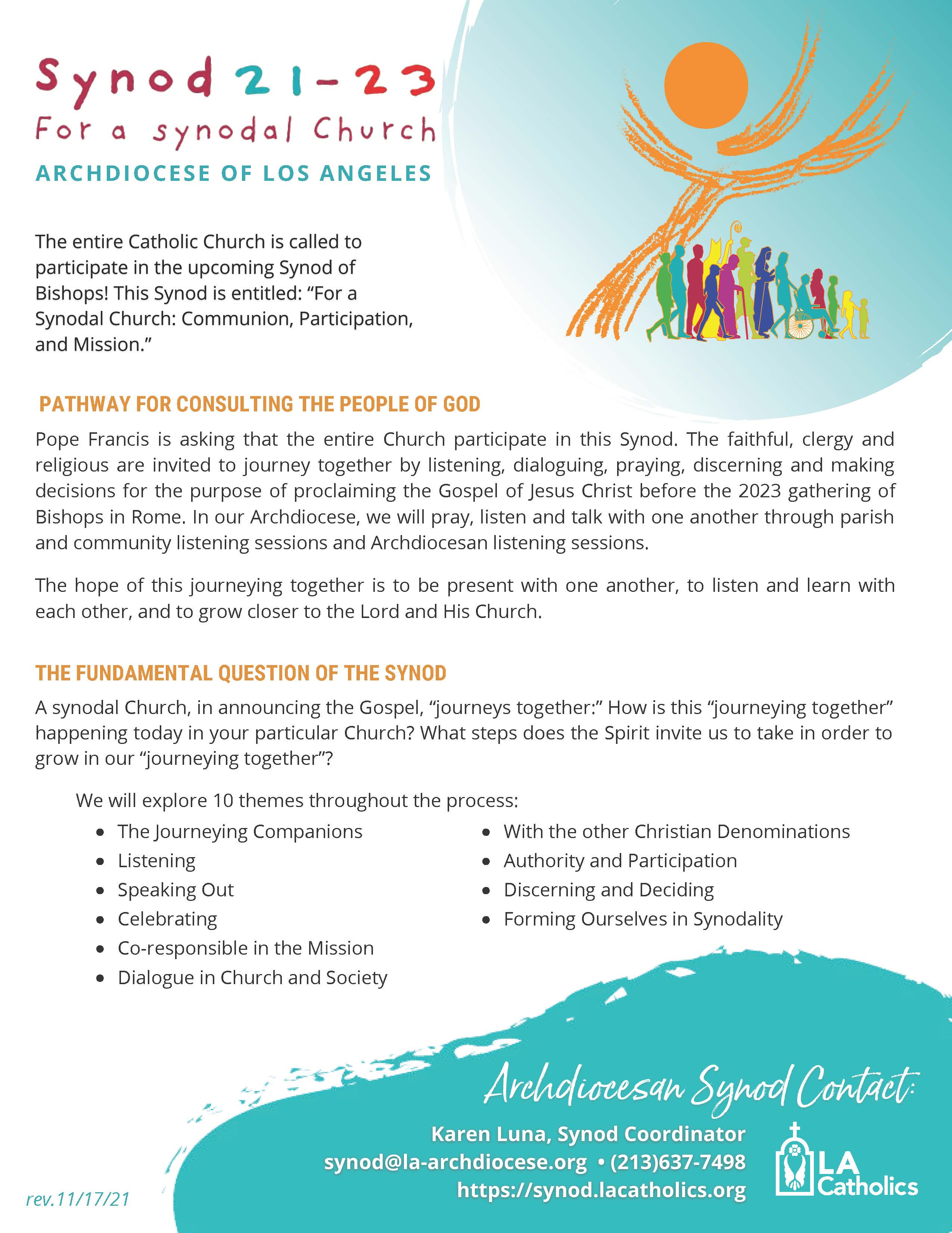 Archdiocesan Website on the Synod Process: https://synod.lacatholics.org/